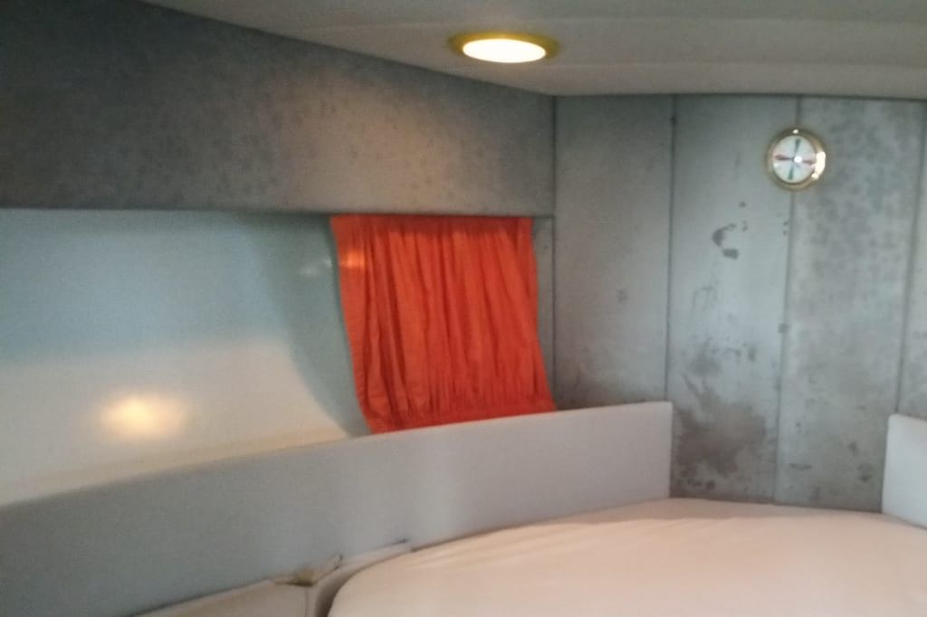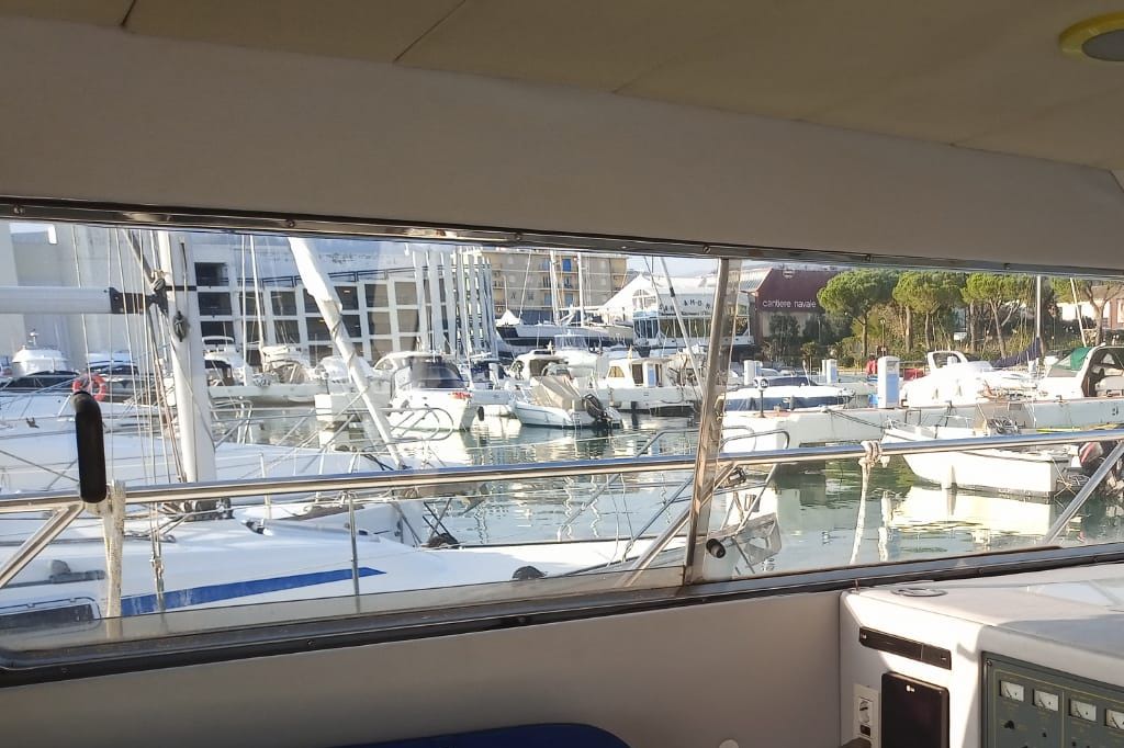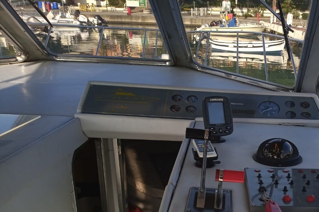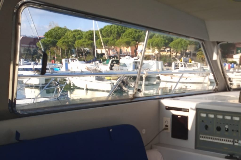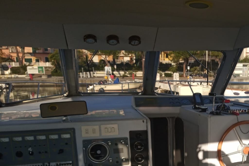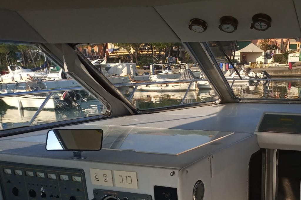 Classico motoryacht d'altura Progetto Caliari, dalla linea filante e aggressiva con carena a V profonda che le permette una navigazione sicura con tutti i tempi, Fly allungato sino a meta' pozzetto che comprende un divano a tre posti e un'ampia zona sole, postazione guida raccolta con i comandi pricipali per il governo della barca, ottima la visibilità a 360 gradi. Innovativa disposizione degli interni con 2 ampie cabine matrimoniali ognuna dotata di bagno personale, cucina interna completa di ogni servizio in locale separato sottocoperta di facile comunicazione con il salone,-Salone ampio e ben disposto con divano tresformabile in matrimoniale all'occorenza, postazione di guida interna con tutti i comandi principali e strumentazione completa,